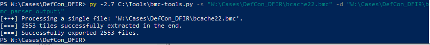 A great tool to parse these files with is ANSSI-FR’s bmc-tools.py script. This will parse the RDP Bitmap Cache file and extract thumbnails into a defined directory. These images are not ordered in anyway, and there are a LOT of them, so it takes some time to go through.
