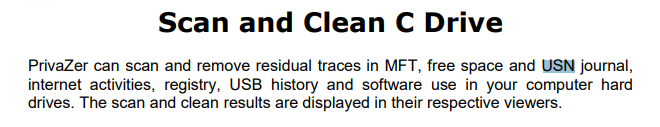 We saw PrivaZer being used to wipe log files in our Google search from question 3. Further Googling shows us that it can, in fact, wipe artifacts from the $USNJrnl file. From their User Guide: