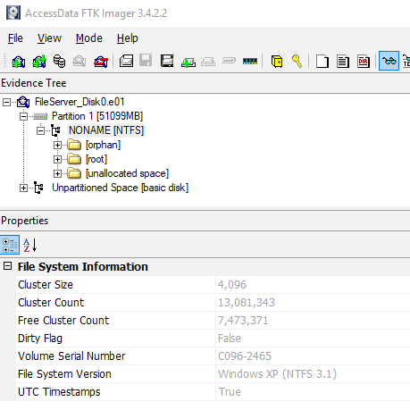 1) What is the volume serial number of the only partition on the File Server Disk Image?