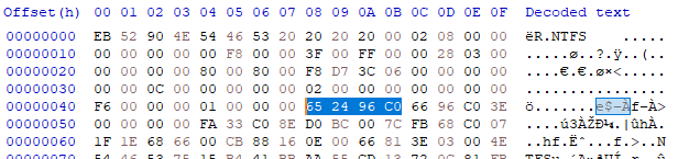 From decimal offset 72 to 79, an NTFS PBR contains the partition UUID volume id serial number.
