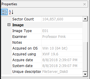 Using ewfinfo in the SIFT Workstation, you can get the properties of the image file. Another way to look is in FTK Imager under the Properties tab: