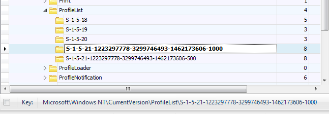 To find this, we can look in the SOFTWARE registry hive. This hive maintains a list of profile names and SIDs: SOFTWARE\Microsoft\Windows NT\CurrentVersion\ProfileList.