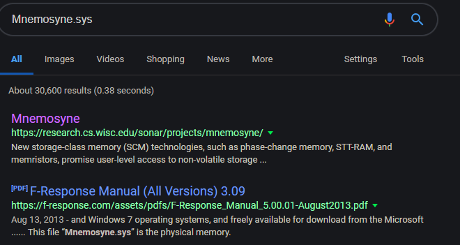 A Google search for Mnemosyne.sys gave me a couple clues that it was related to memory. Further Googling showed that F-Response launches this driver when acquiring the physical memory of a target machine.