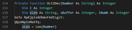 There was one more function that was mentioned in DecryptEPI called Oct2Dec() which looked similarly obfuscated to DecryptEPI: